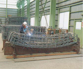 RCセグメントとは、シールド工法によるトンネルの壁面で使われる製品で、分割されたブロック(セグメント)を組み上げて構築するものです。当社はその骨格となる鉄筋を組み上げる部分を担当。約3年半の間に4万5千tもの鉄筋を使用しました。