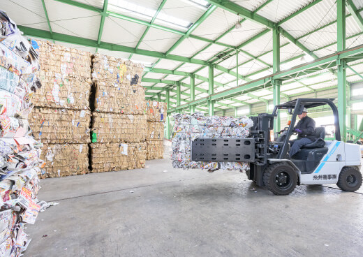 四本柱である原料事業、鋼材事業、工事事業、資源循環事業などを展開する糸井商事では、営業、工事施工・管理、場内業務、収集運搬、事務などの職種にスタッフが従事しています。どの職種でも大切なことは、自分から動く力、動こうとする姿勢です。